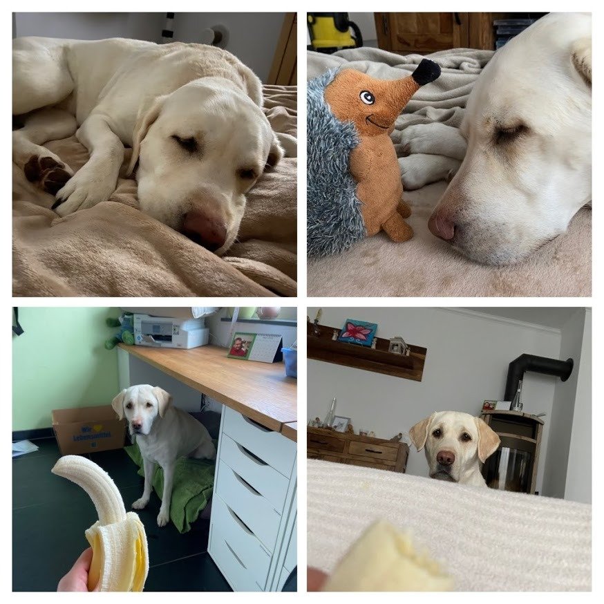 Jeden Morgen bekomme ich jetzt eine halbe Banane. Die sind lecker. *wuff*