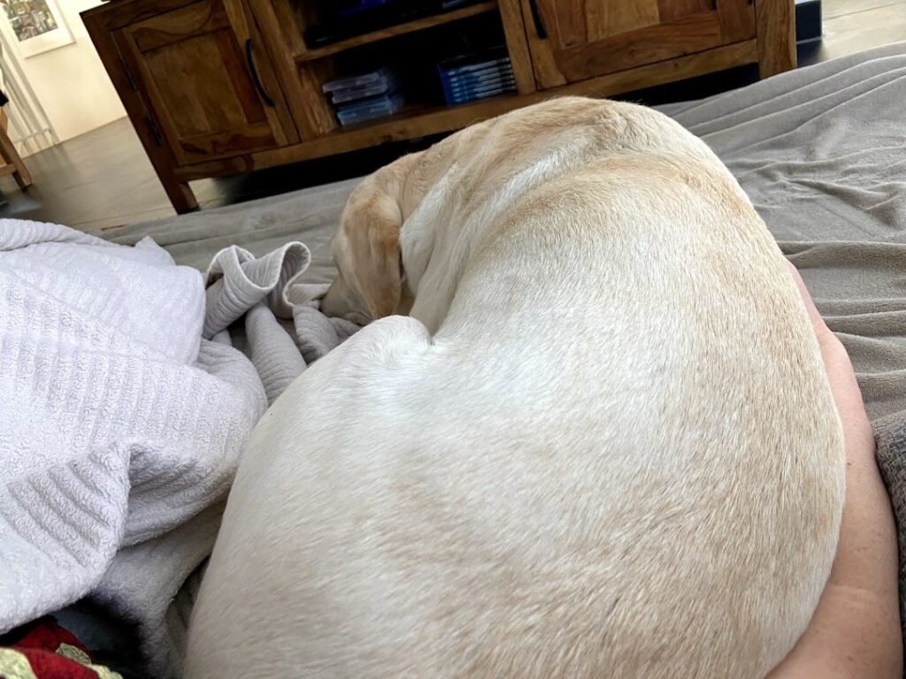 Wenn die beiden am PC und Tablet arbeiten, dann kuschel ich mich unter ihre Schreibtische. In den Pausen wird neben den schönen Gassigängen gemeinsam gekuschelt.