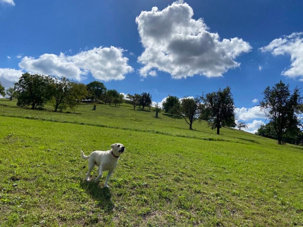 Manchmal bin ich noch richtig gut drauf. Dann spiele ich mit meinem Freund Nero, fahre in den Hundeurlaub, geh schwimmen oder verstecke mich.